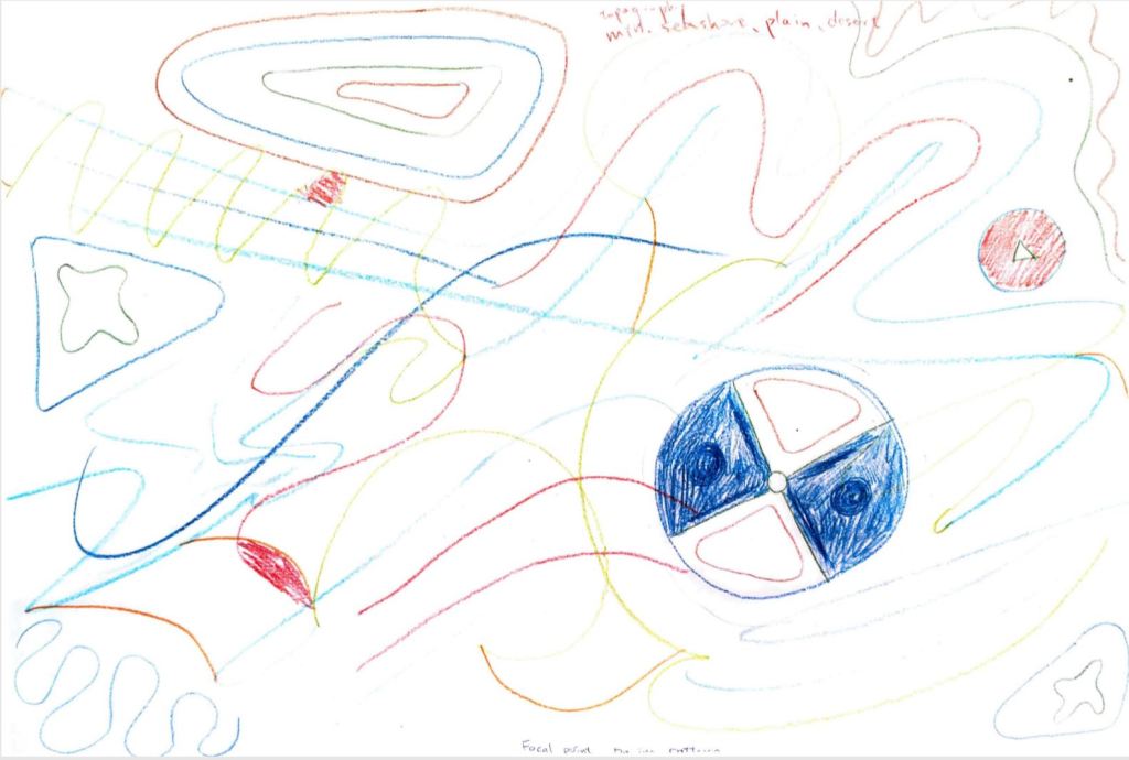 More often our dreams while we are sleeping come from the thoughts we have had, people we have seen, or places we have been. I was visiting some museums and shopping centers during my winter break. When I look at those abstract lines and shapes drawn by my classmates, I feel I’m in a shopping plaza that I enjoy a lot when I’m there.